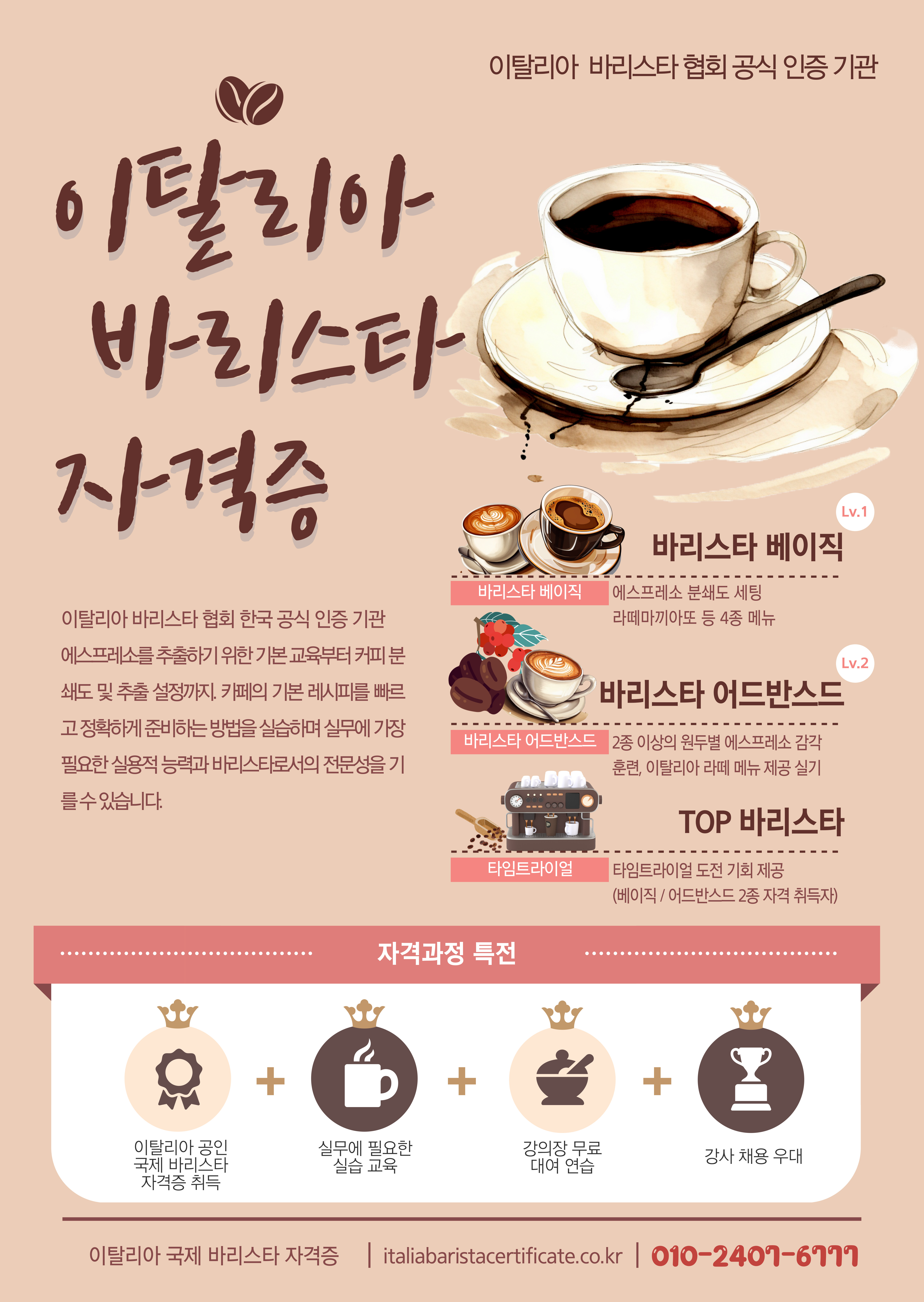 이탈리안바리스타자격증 IBC훈련과정 내용입니다!