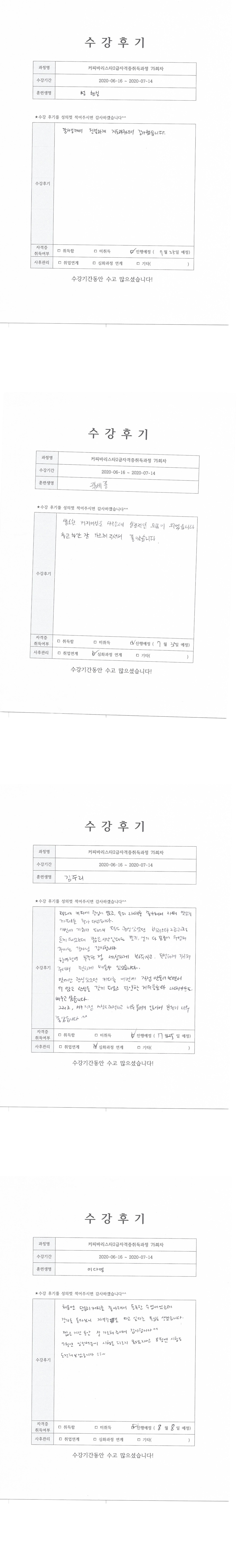 커피바리스타2급자격증취득과정 75회차 수강후기