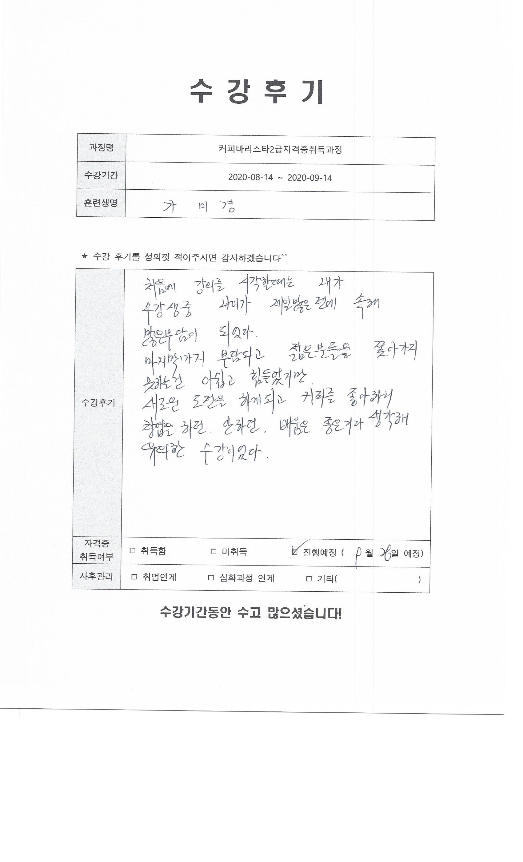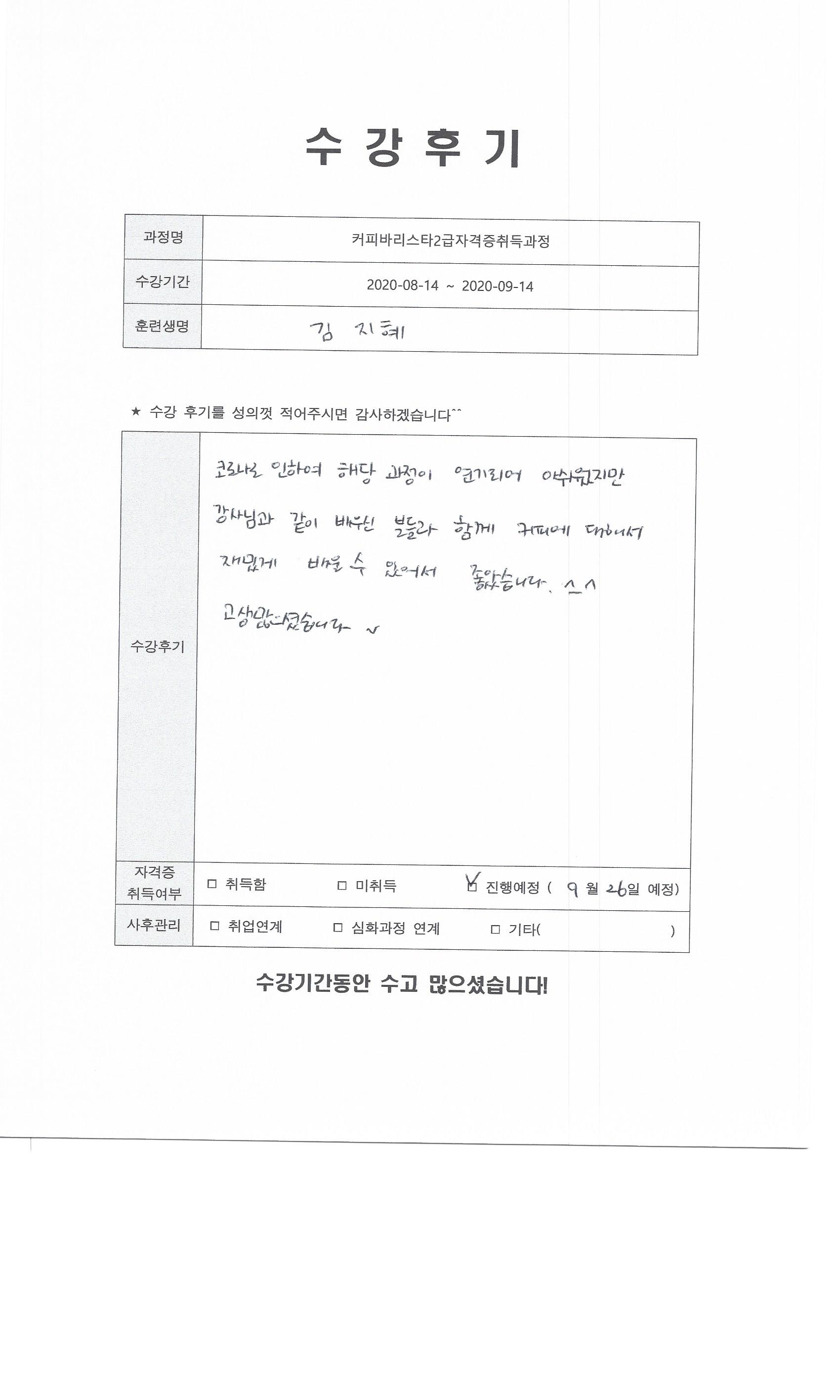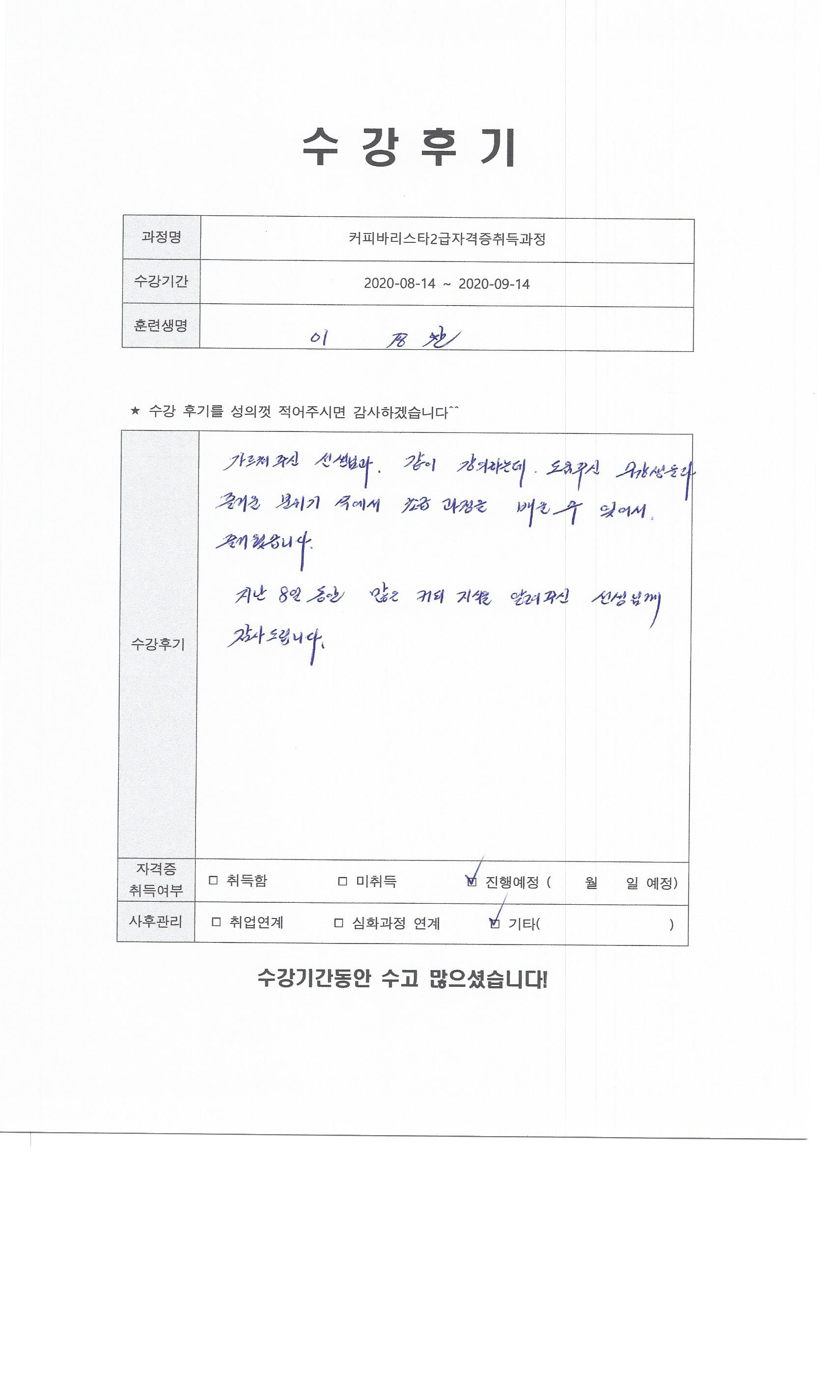 커피바리스타2급자격증취득과정 117회차 수강후기