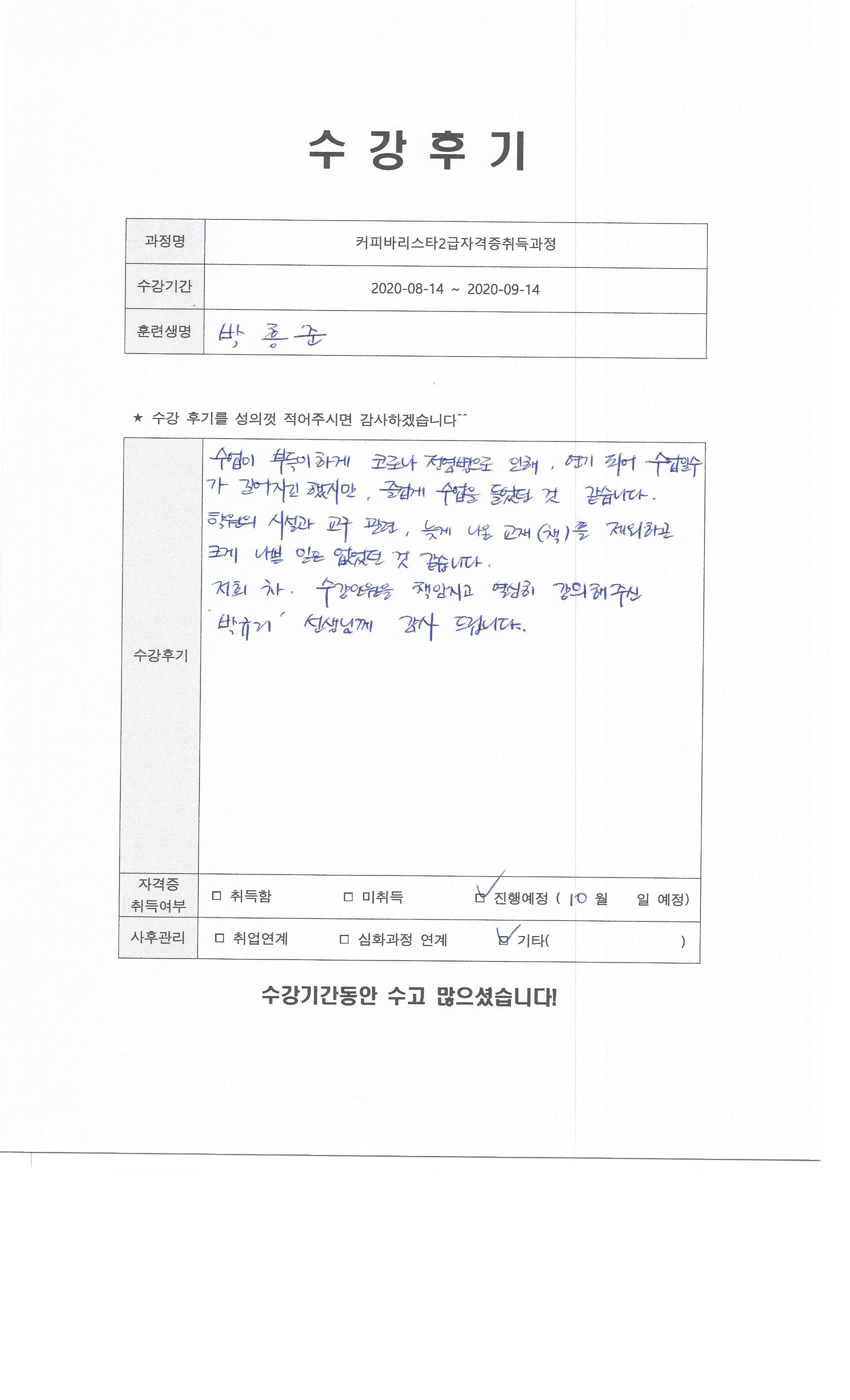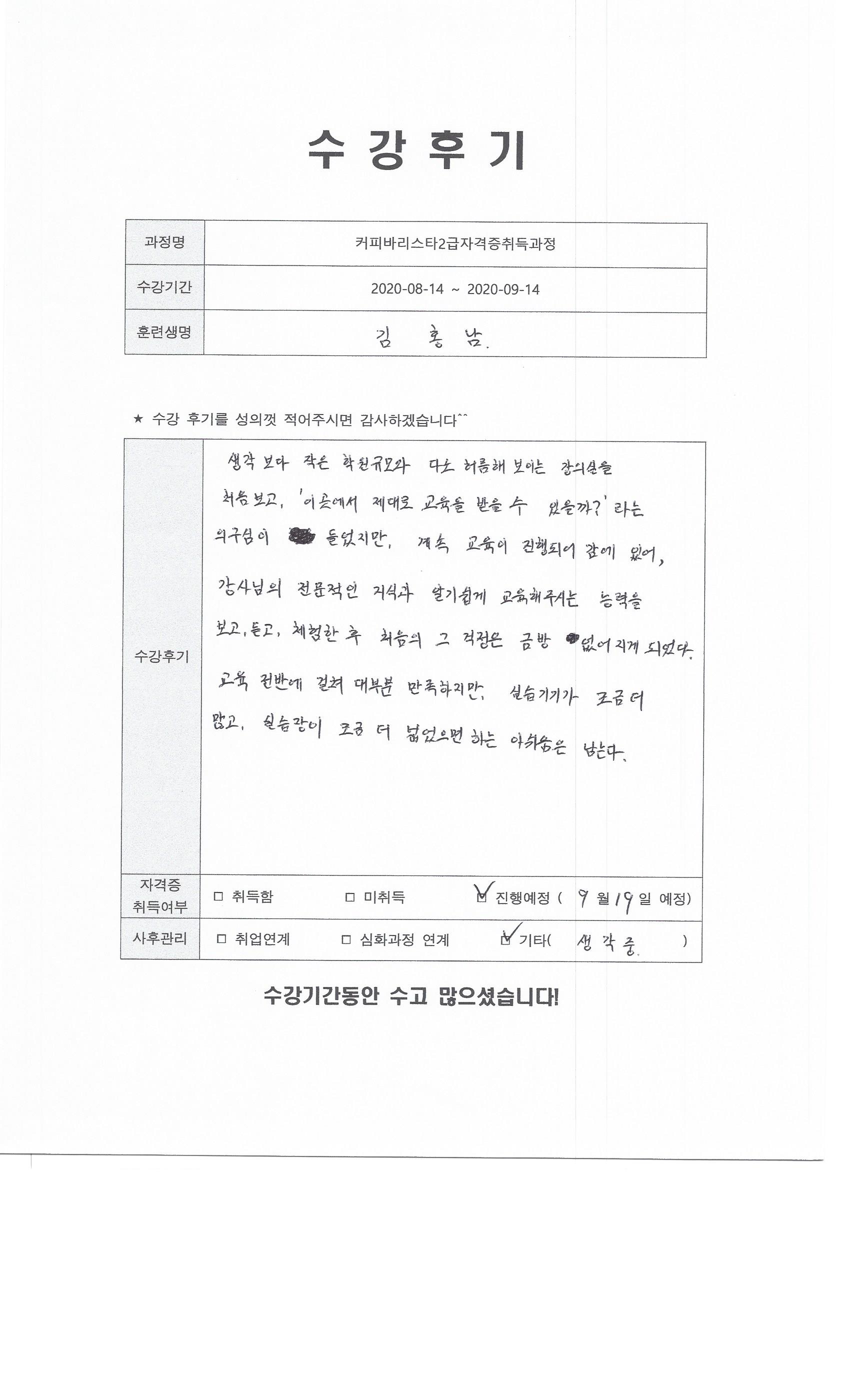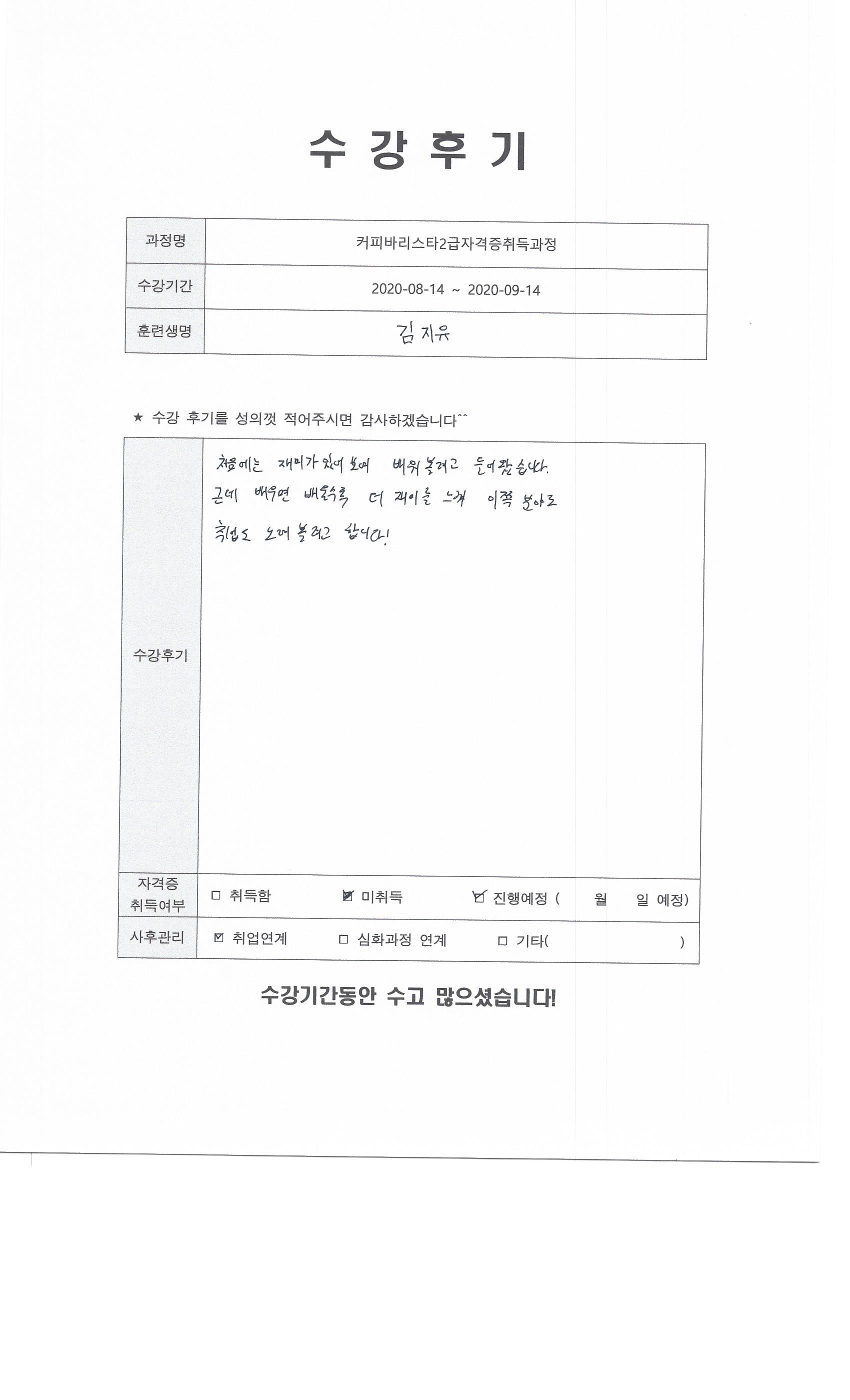 커피바리스타2급자격증취득과정 117회차 수강후기