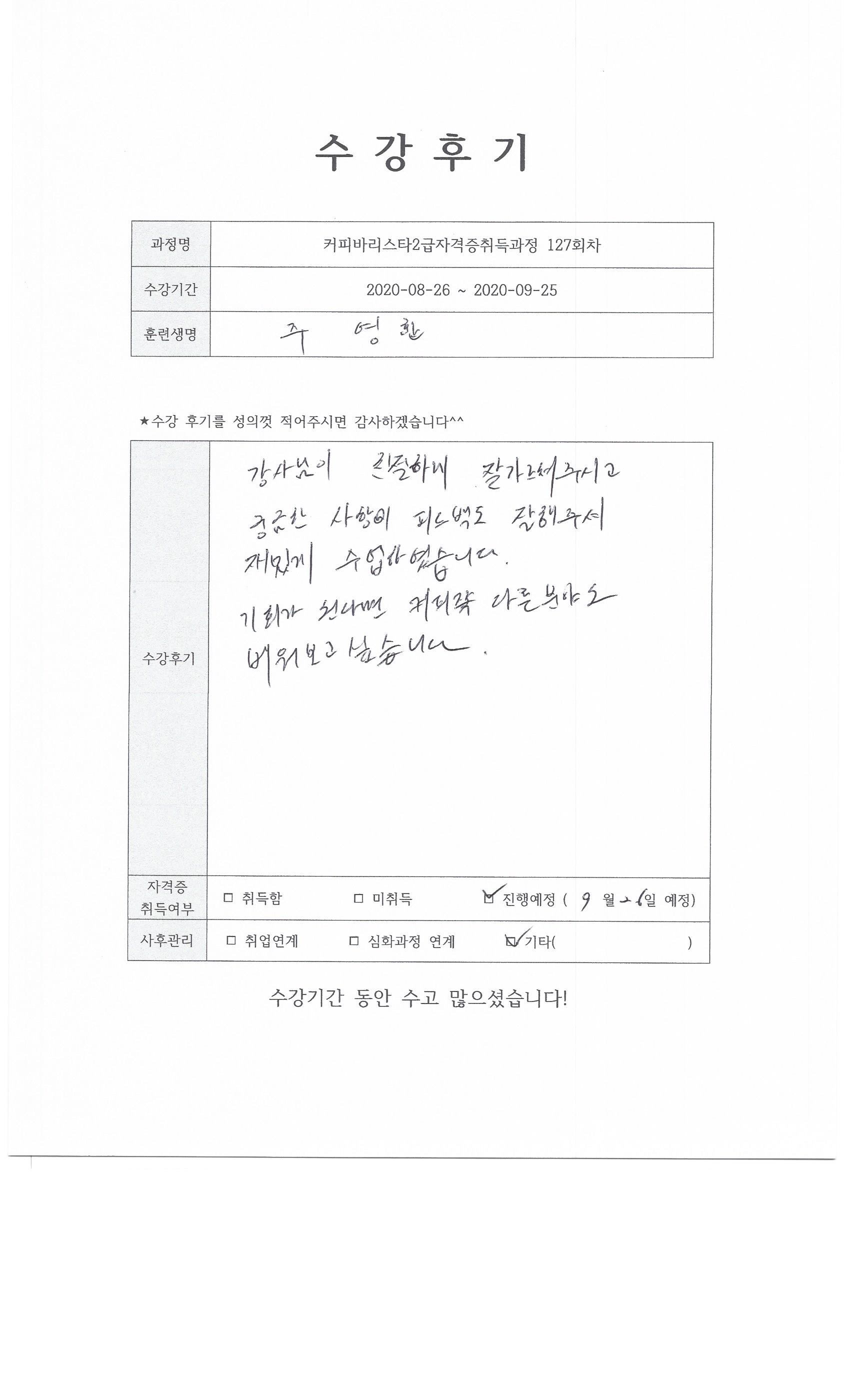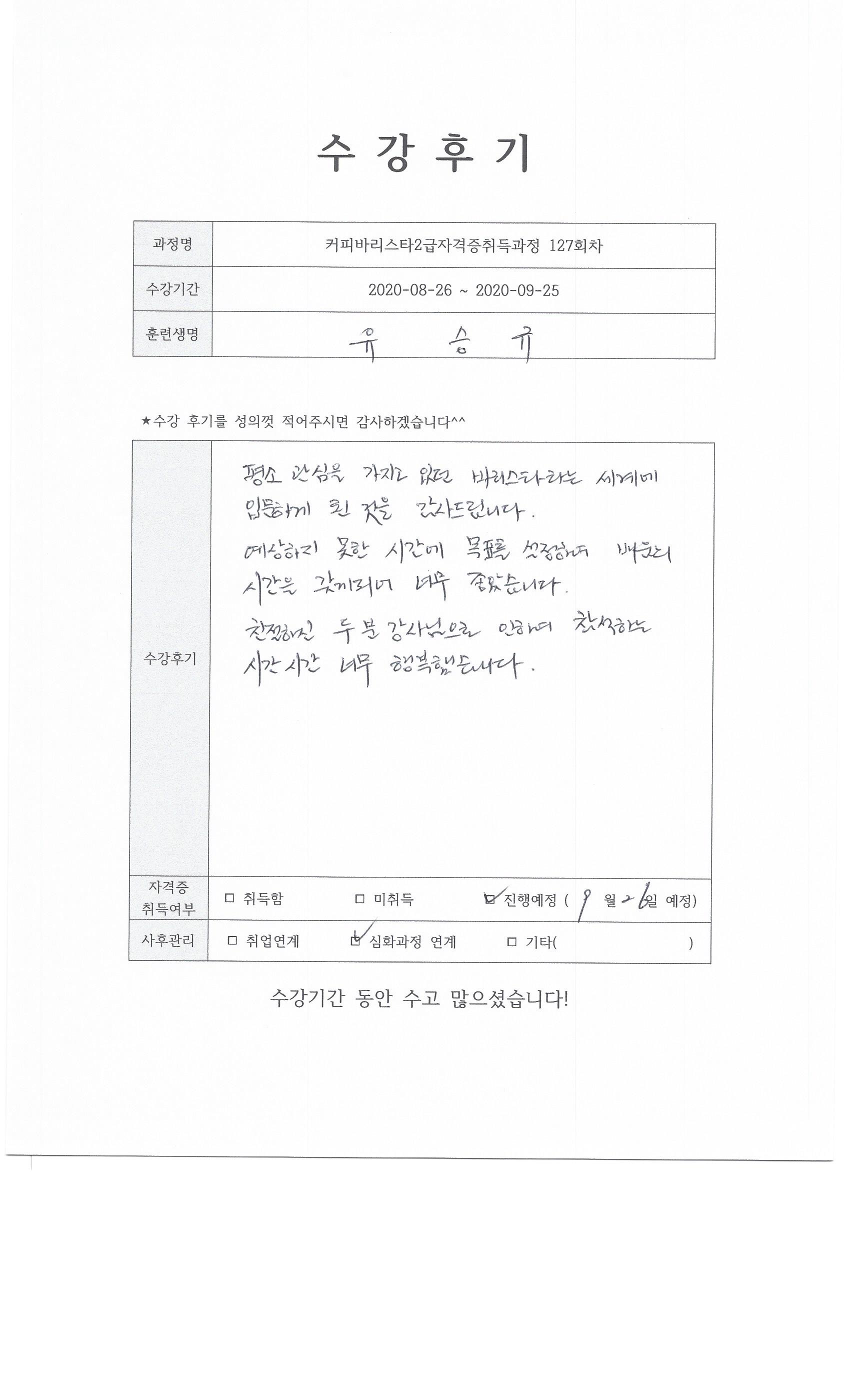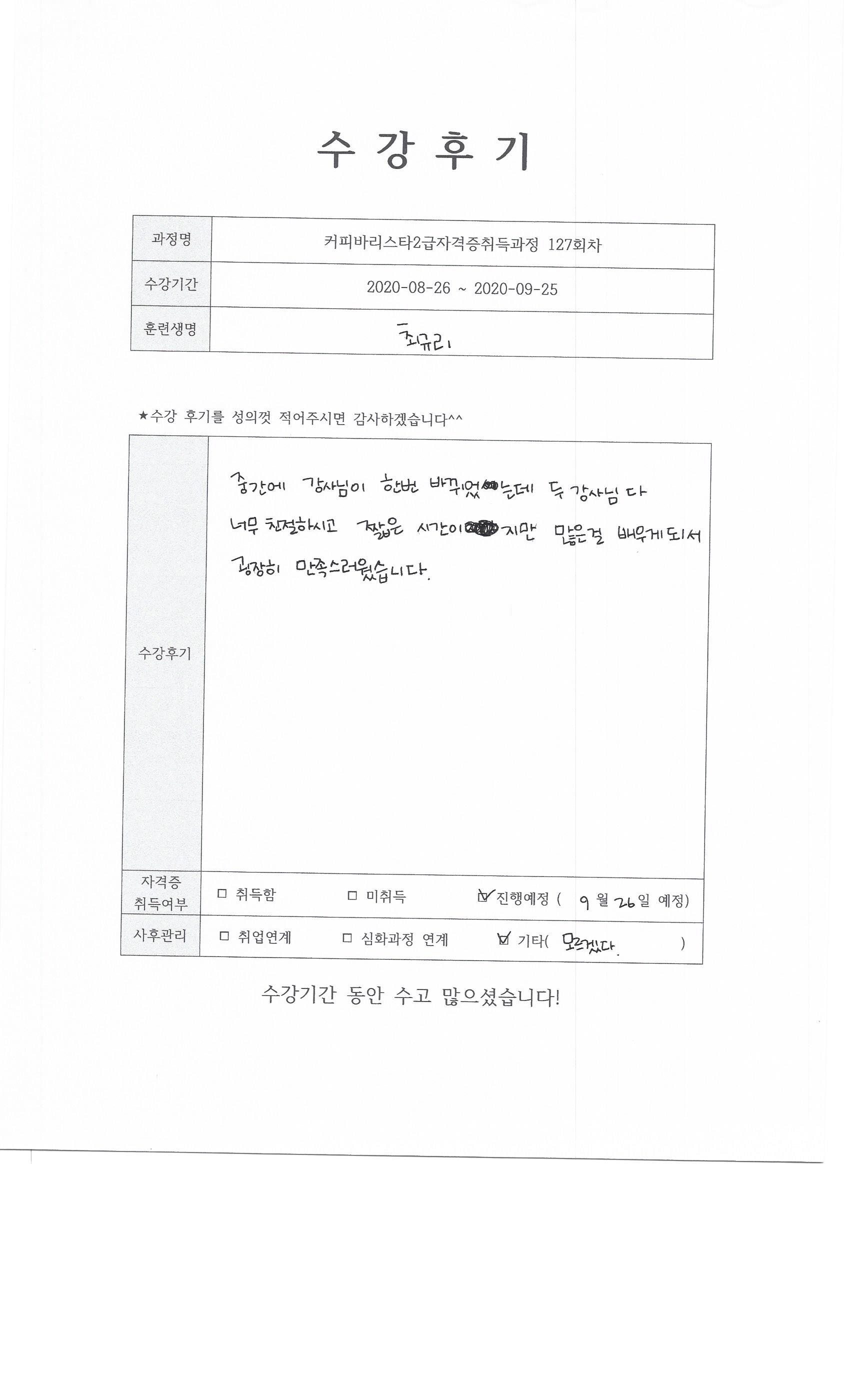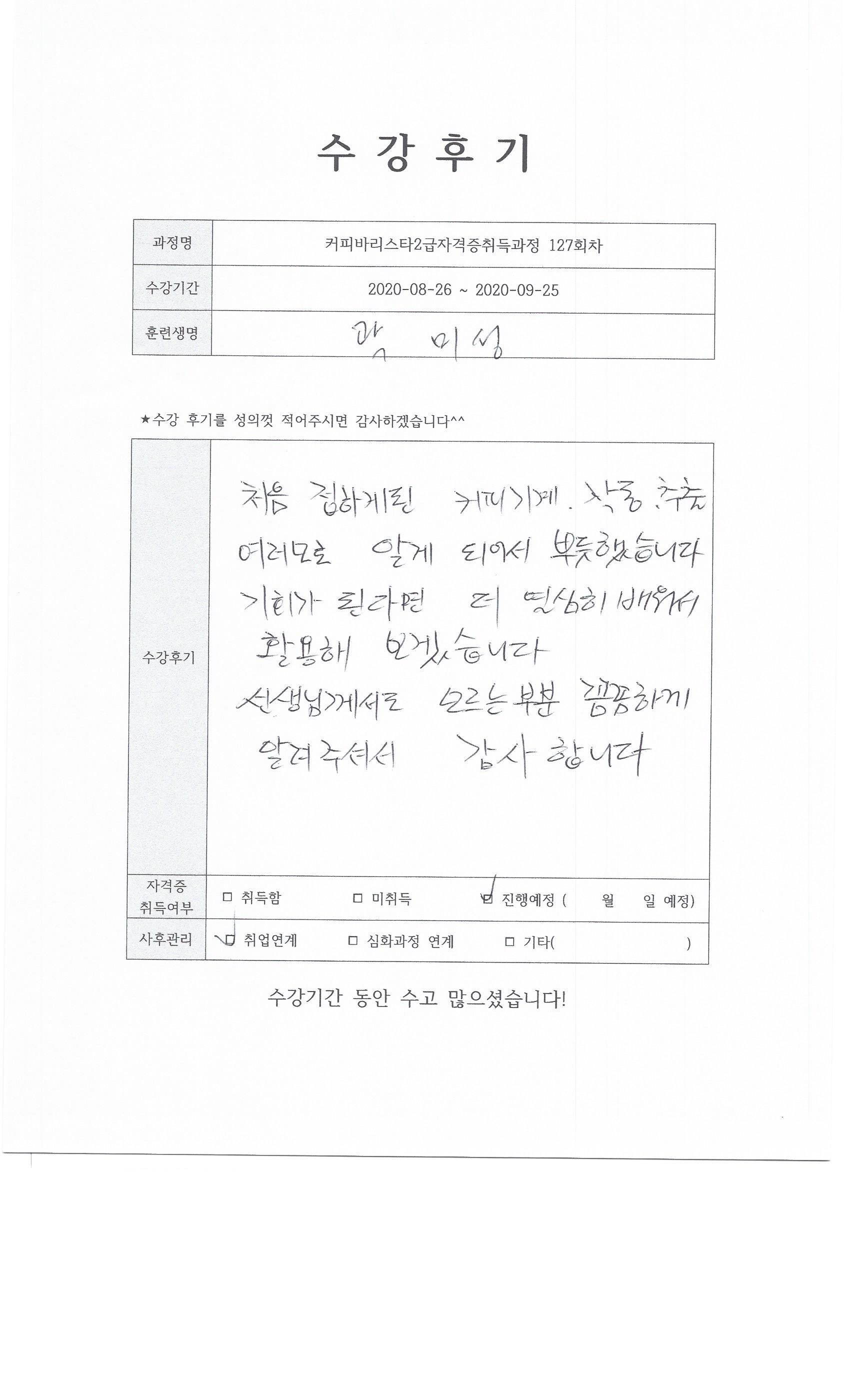 커피바리스타2급자격증취득과정 127회차 수강후기