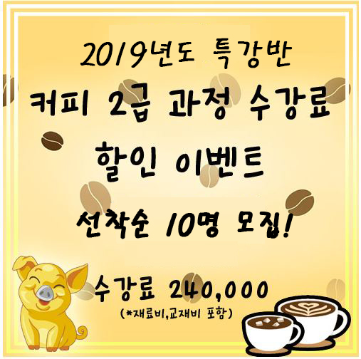 커피바리스타2급자격증취득과정 일반과정 특가 선착순 10명 모집!