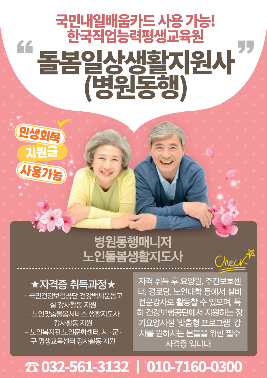 병원동행매니저+노인생활지도사 자격증 동시 취득 가능!