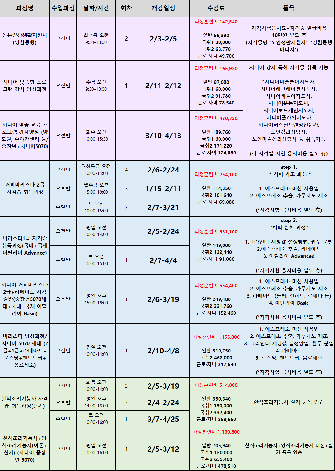 2026년 2월 국비 과정 개강일정표 안내
