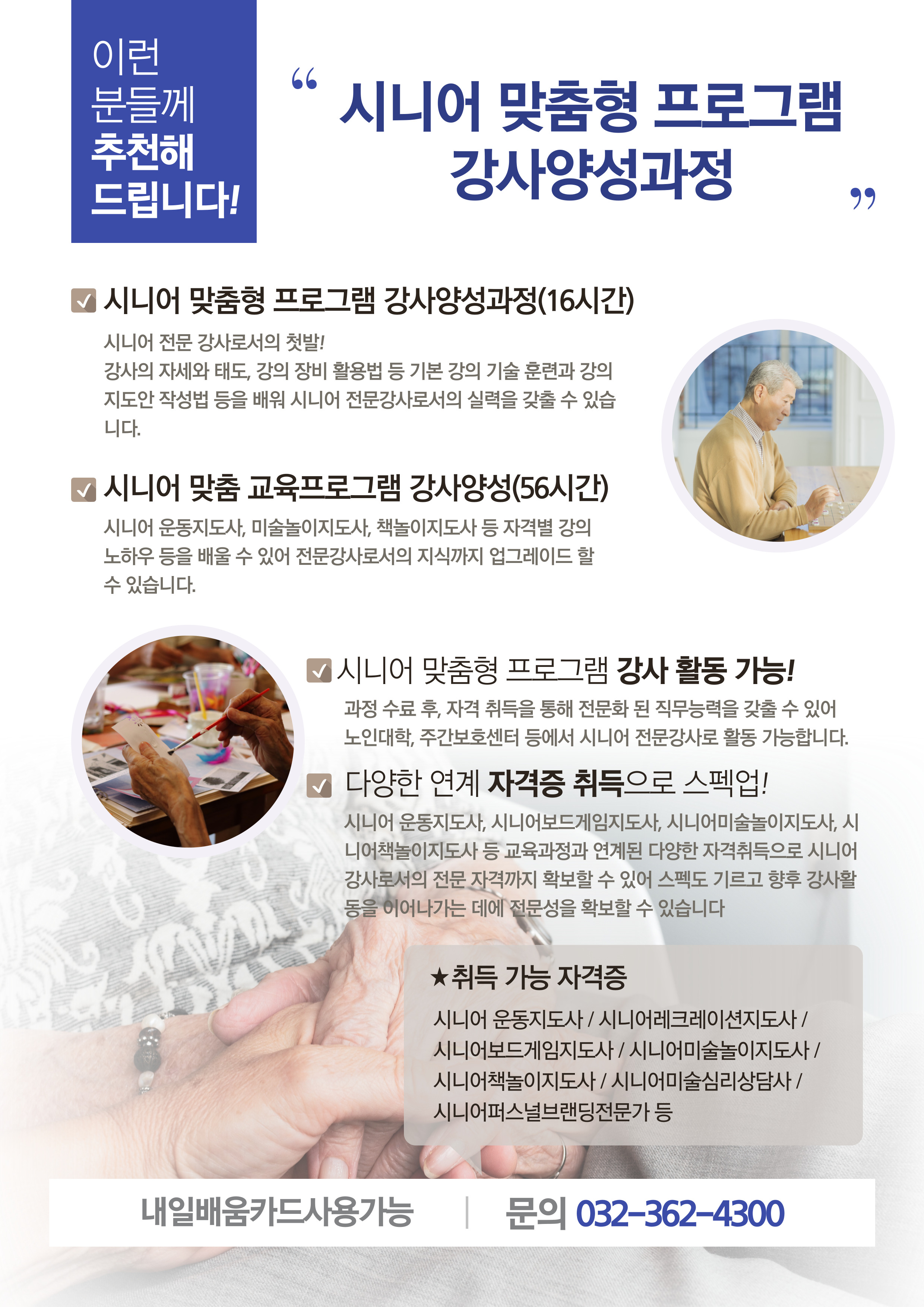 "시니어 맞춤형 프로그램 강사양성과정"을 안내합니다.